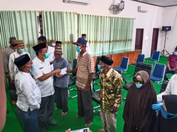 Analisaaceh.com, Meureudu | Wakil Bupati Pidie Jaya menyalurkan zakat kepada fakir dan lansia dari Baitul Mal Kabupaten setempat di Aula MPU, Rabu (19/8/2020).