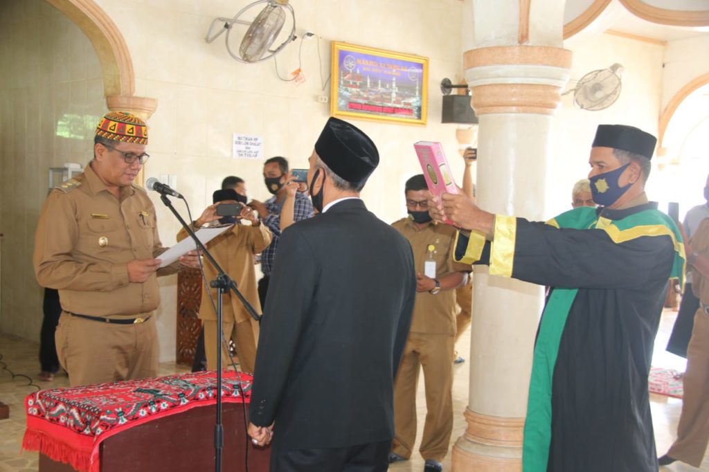 Analisaaceh.com, Sigli | Wakil Bupati Pidie Fadhlulah TM Daud, ST melantik serta mengambil sumpah jabatan Imum Mukim Titeue, Kecamatan Titeue Kabupaten setempat. Kegiatan tersebut berlangsung di Mesjid Al Ikhlas Kemukiman Titeue, Selasa (1/8/2020).