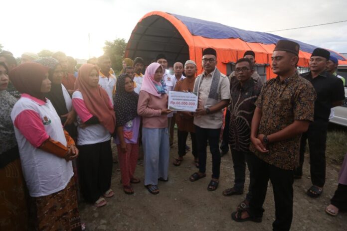 Analisaaceh.com, Blangpidie | Wakil Ketua Dewan Perwakilan Rakyat Aceh (DPRA), Safaruddin menyerahkan bantuan masa panik untuk korban kebakaran di Gampong Simpang Gading, Kecamatan Babahrot, Kabupaten Aceh Barat Daya (Abdya).