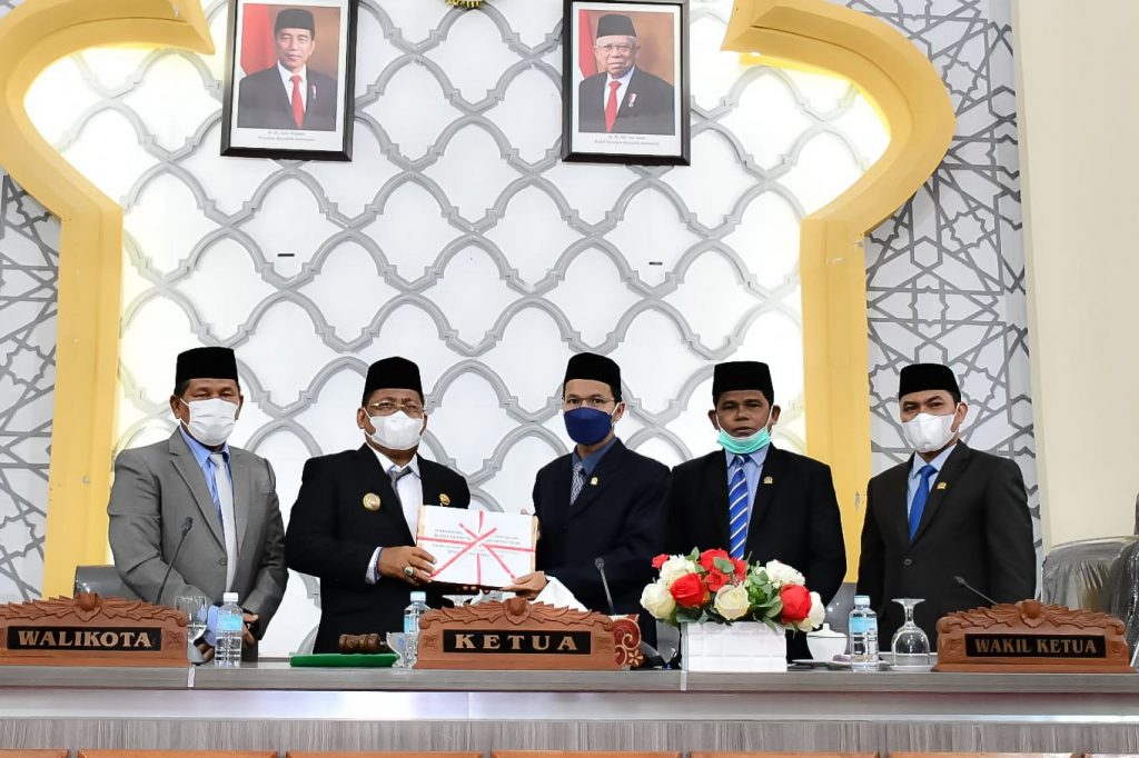 Analisaaceh.com, Banda Aceh | Wali Kota Banda Aceh, Aminullah Usman mengajukan Rancangan Kebijakan Umum (RKU) APBK dan Prioritas Plafond Anggaran Sementara (PPAS) Tahun Anggaran 2022 pada Sidang Paripurna DPRK Banda Aceh, Senin (9/8/2021) kepada Ketua DPRK Banda Aceh, Farid Nyak Umar.