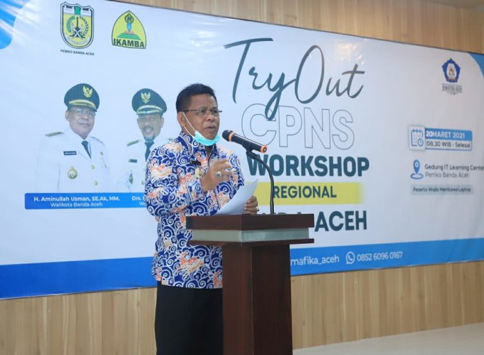 Analisaaceh.com, Banda Aceh – Wali Kota Banda Aceh Aminullah Usman membuka Try Out CPNS dan Workshop bekerjasama dengan Ikatan Mahasiswa Kota Banda Aceh (IKAMBA) dan LBB BT/BS Bimafika. Kegiatan tersebut berlangsung di Aula Gedung IT Learning Center, Sabtu (20/3/2021).