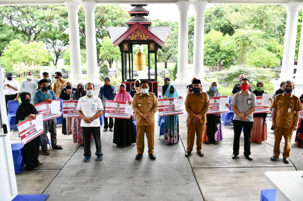 Analisaaceh.com, Banda Aceh | Wali Kota Banda Aceh Aminullah Usman menyerahkan bantuan uang tunai secara simbolis kepada masyarakat terdampak Covid-19 di sembilan kecamatan se-Banda Aceh.