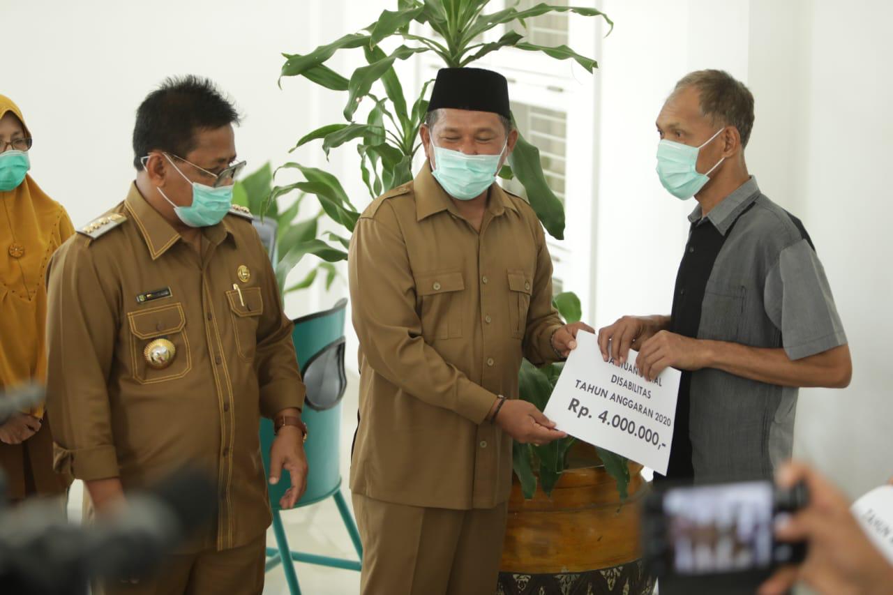 Santunan bansos tersebut diserahkan langsung secara simbolis kepada lima penyandang oleh Wali Kota Banda Aceh Aminullah Usman bersama Wakil Wali Kota Zainal Arifin, Senin 6 April 2020, di Pendopo Wali Kota.