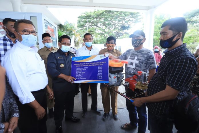 Analisaaceh.com, Banda Aceh | Wali Kota Banda Aceh Aminullah Usman kembali menyerahkan bantuan bagi pelaku usaha kecil, kali ini bantuan berupa alat kerja diserahkan bagi kelompok pelaku usaha industri kecil (home industri) yang ada di Kota Banda Aceh. Penyerahan bantuan diserahkan pada Selasa (24/11/2020) di halaman Pendopo wali kota.