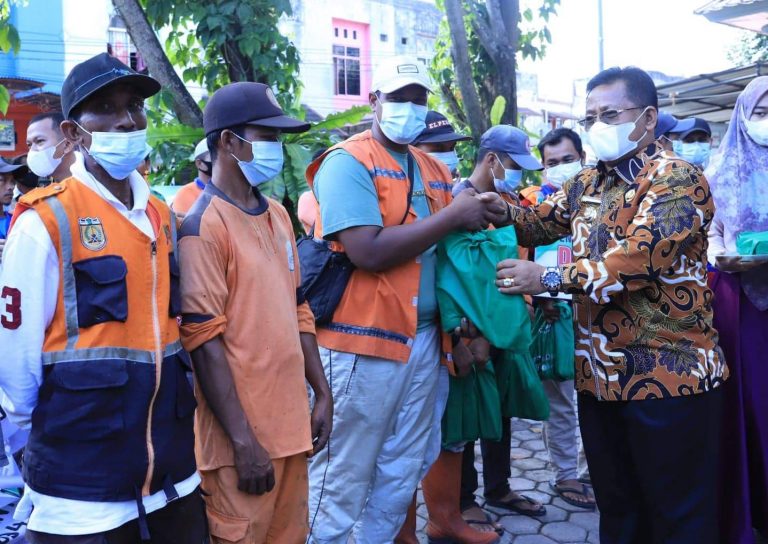 Analisaaceh.com, Banda Aceh | Jelang Hari Raya Idul Fitri 1443 H Sebanyak 694 Tenaga Harian Lepas (THL) kebersihan Dinas Lingkungan Hidup Kebersihan dan Keindahan Kota (DLHK3) Banda Aceh menerima bantuan paket Lebaran dari Wali Kota Aminullah Usman.