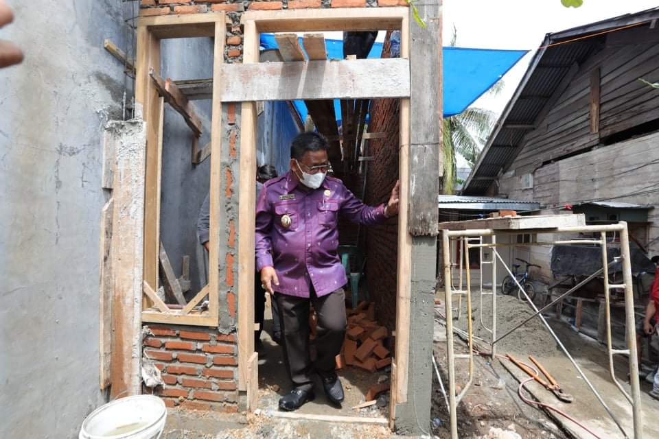 Di tengah kesibukannya dengan berbagai agenda, ia menyempatkan diri meninjau rumah M Thaib yang sedang dibangun.