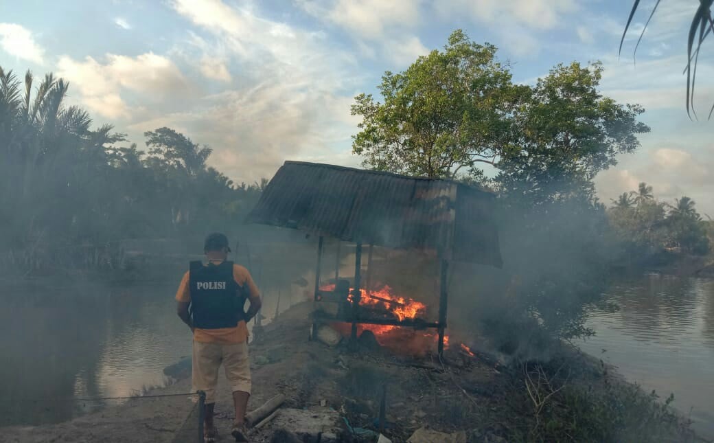 “Ada sekitar 30 orang yang mendatangi gubuk tersebut lalu melakukan pembakaran. Di lokasi, kata warga, juga banyak ditemukan alat hisap sabu (baca:bong)” kata Kapolsek.