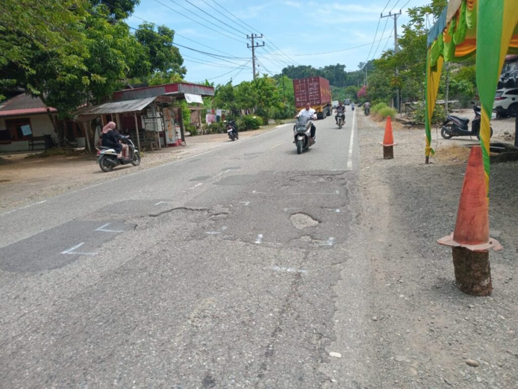 “Kami berharap agar jalan rusak ini segera dilakukan penanganan untuk menghindari terjadinya kecelakaan akibat kerusakan di badan jalan nasional itu,” ucapnya.