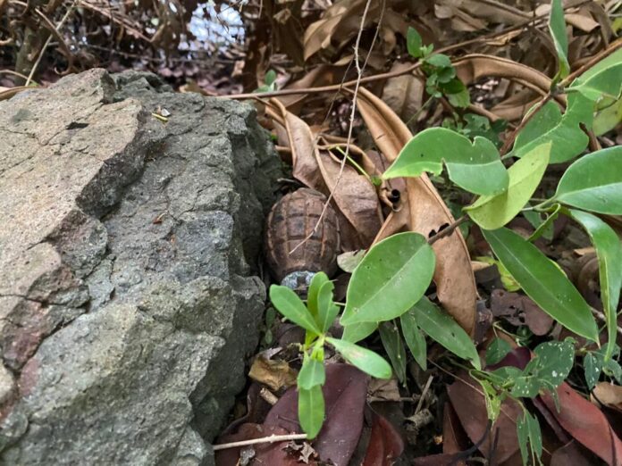 Analisaaceh.com, Aceh Besar | Safrizal bersama rekannya temukan benda bermotif kotak – kotak yang diduga kuat granat tangan jenis nanas di pinggir pagar kebun di Gampong Durung, Kecamatan Mesjid Raya, Aceh Besar.