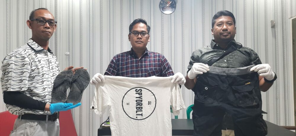 Kompol Ryan menjelaskan, adapun ciri – ciri pakaian kaos putih bertuliskan SPYDRBLT EST 91, celana hitam pendek dengan merk ALONE, dan sedal jepit warna hitam merk EIGER.