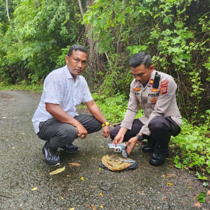 Analisaaceh.com, Sigli | Warga Kecamatan Tiro Kabupaten Pidie menyerahkan sepucuk pistol rakitan jenis FN bersama magasin dan lima butir peluru ke Polsek Tiro, Polres Pidie, Aceh, Senin (13/11/2023).