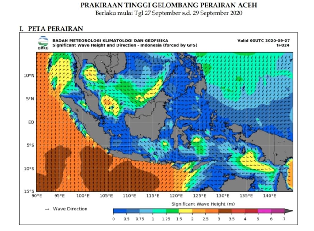 Analisaaceh.com, Banda Aceh | Badan Meteorologi, Klimatologi dan Geofisika (BMKG) Stasiun I Sultan Iskandar Muda (SIM) Banda Aceh mengeluarkan peringatan dini gelombang laut tinggi di perairan Aceh pada Minggu (27/9/2020).