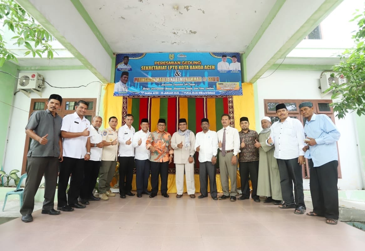 Analisaaceh.com, Banda Aceh | Wali Kota Banda Aceh, Aminullah Usman didampingi wakilnya, Zainal Arifin dan Kadis Sariat Islam, Tgk Alizar usman meresmikan Gedung Lembaga Pengembangan Tilawatil Quran (LPTQ) Banda Aceh, Rabu (29/1/2020).