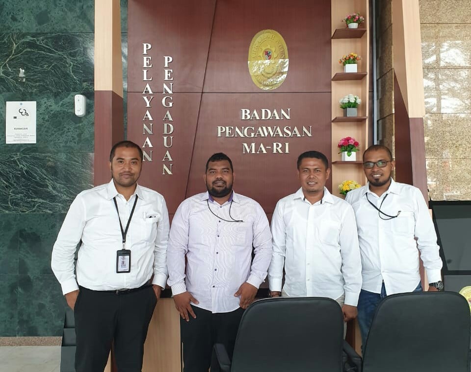 Ketua YARA Safaruddin (kiri) berfoto bersama staf disela penyampaian laporan ke Bawas Mahkamah Agung RI di Jakarta, Selasa (20/8/2019)@ist