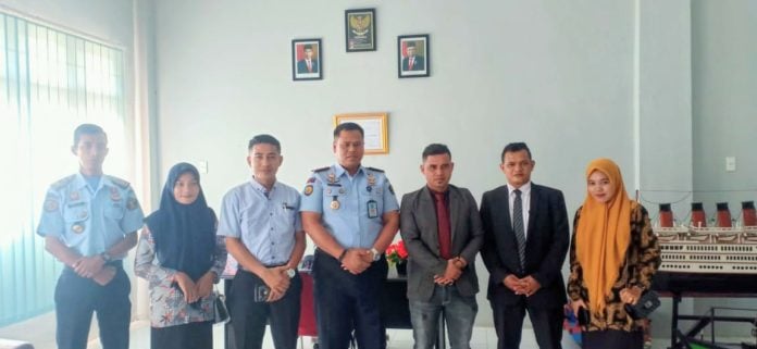 Kunjungan itu disambut oleh Kepala Lapas Blangpidie, Hudi Ismono, A.Md.IP.,SH.,MH yang di ruangnya.