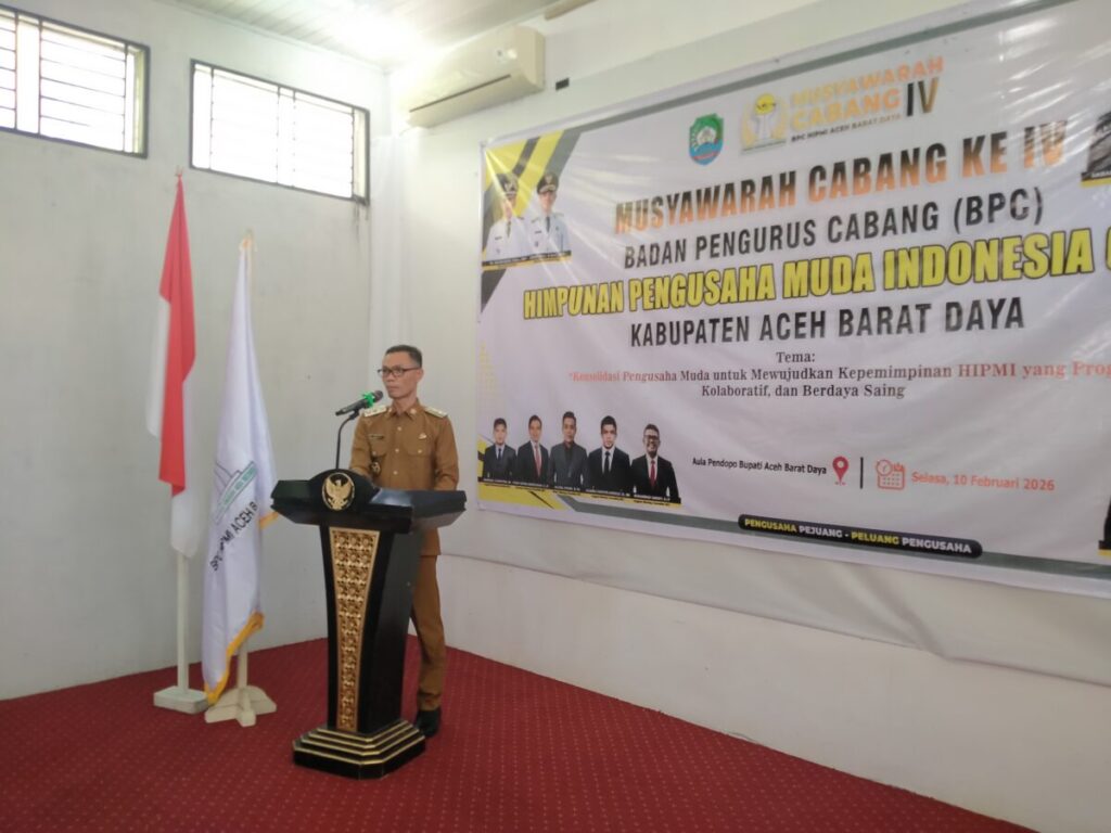 Hal itu disampaikan Zaman Akli saat membuka Musyawarah Cabang (Muscab) ke-IV Badan Pengurus Cabang (BPC) HIPMI Abdya yang berlangsung di Aula Pendopo Bupati setempat, Selasa (10/2/2026).